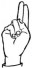 На ћирилици написано КОНСТАНТИН КОМАРНИЧКИ састоји се из 20 слова [?]. Исписано ћириличном једноручном азбуком за глувонеме: